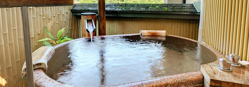 日本でも最古の歴史を持つ玉造温泉は、昔から現在まで、人々から「神の湯」と呼ばれ、美肌と健康に高い効果を持つ名湯として親しまれています。佳翠苑皆美は、岩のしつらい、木漏れ日揺らめく露天の湯。さらに源泉かけ流しの客室露天風呂、手湯足湯など旅の疲れを癒してくれる多彩な湯で、おもてなしいたします。